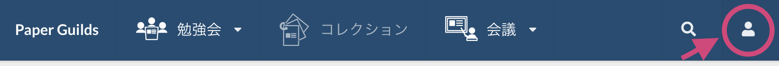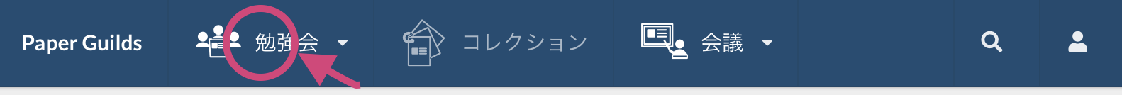 Paper Guildsサイトのナビゲーションバー左にある勉強会アイコンをクリックします。