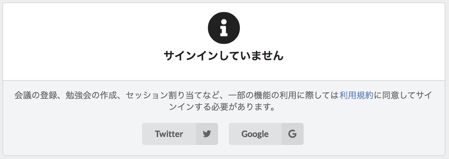 TwitterないしGoogleのアカウントを使ってログインをします。各サービスの画面に遷移します。