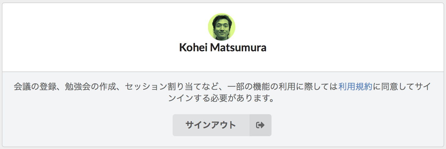 発表担当をキャンセルする場合は「発表担当をやめる」ボタンを押します。